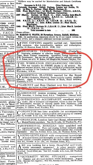The Wimbledon Philharmonic Orchestra was formed between the wars, revived after WW2, and until the late 1950s, conducted by an enthusiastic local bank manager, Kenneth Tucker, until he retired and moved to the West country